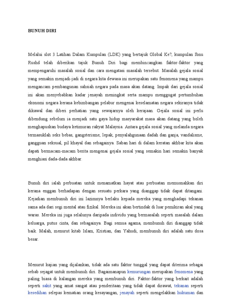 Karangan punca mental. Punca berlakunya tekanan mental dalam kalangan remaja dan langkah-langkah untuk mengatasinya. Para pelajar digalakkan membaca dengan lebih banyak supaya didedahkan dengan salah satu tema dan tajuk soalan yang lazimnya dikeluarkan ketika peperiksaan mata pelajaran Bahasa Melayu. Masalah kesihatan mental dalam kalangan anak-anak muda di negara ini disifatkan sebagai membimbangkan.